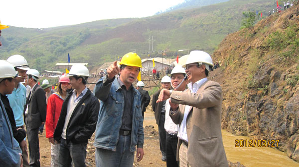 參加截流儀式的有越南工商部副部長、世界銀行官員、越南銀行官員、業(yè)主MECO公司董事長阮一平、安發(fā)水電投資股份公司董事長阮平陽和總經理陳重朵等。我公司駐越南分公司經理鄒春明和項目經理夏愛民分別向參加儀式的嘉賓詳細介紹了工程施工情況,各方嘉賓亦對工程施工情況表示贊賞。越南工商部副部長說,“南化二級電站是他管轄的十二個省市里進度最快、質量最好的項目”。