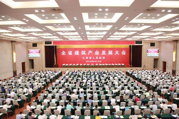 6月15日上午,江西省政府在南昌召開全省建筑產(chǎn)業(yè)發(fā)展大會,省政府朱虹副省長、蔡玉峰副秘書長,住房城鄉(xiāng)建設部總工程師陳重,建設廳領導張勇等出席了會議。省直有關單位負責人,各設區(qū)市、縣(市、區(qū))政府分管領導和建設局(建委)主要負責人,全省特、一級建筑企業(yè)和受表彰建筑企業(yè),部分勘察設計單位、監(jiān)理單位負責人近600人參加會議。