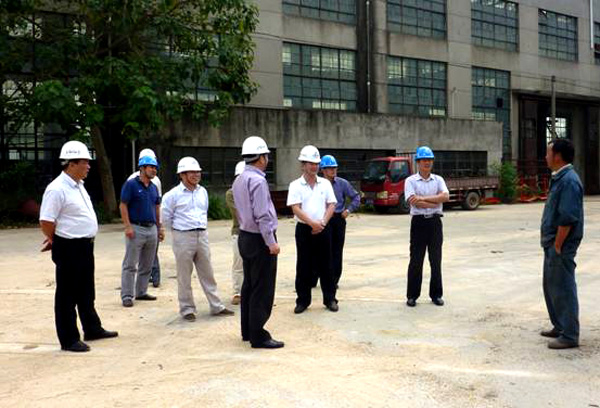 董事長(zhǎng)、總經(jīng)理王元旦一行在機(jī)械安裝公司門(mén)機(jī)拆解現(xiàn)場(chǎng)