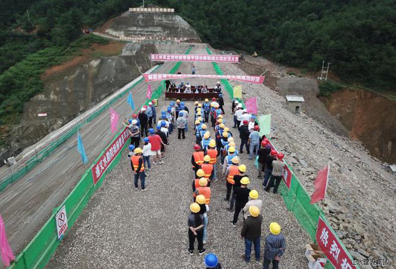 該工程是一座混凝土面板堆石壩,壩高47m,大壩填筑工程量42萬(wàn)m3,大壩于2021年3月5日開始填筑,2021年6月30日填筑完成。大壩填筑完成后,得到了建設(shè)單位、監(jiān)理單位及總包單位的祝賀與肯定。該工程屬貴州省“鄉(xiāng)鄉(xiāng)有穩(wěn)定水源”項(xiàng)目,年供水量250.8萬(wàn)m3,建成后可為安樂溪鄉(xiāng)集鎮(zhèn)及農(nóng)村20000余人提供安全穩(wěn)定供水和21670畝農(nóng)田灌溉用水以及將極大緩解當(dāng)?shù)厝彼桶踩嬎畣栴},意義重大。施工項(xiàng)目部將繼續(xù)堅(jiān)持“科學(xué)管理、精心組織”理念,嚴(yán)格按設(shè)計(jì)和規(guī)范要求,在確保安全和質(zhì)量的前提下加快施工進(jìn)度,為安樂溪人民盡早提供安全水、干凈水及改善供水目標(biāo),確保在合同工期以內(nèi)按時(shí)、按質(zhì)、按量盡早建成交付建設(shè)單位投入使用。集團(tuán)副總裁胡鴻煌參加大壩封頂儀式。