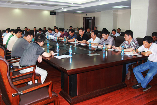 2013年7月14日下午,江西省水利廳黨委書記、廳長孫曉山率廳辦公室、人事處、計劃財務處、建設管理處、離退休干部處等有關處室負責人一行來到公司,就省水利廳開展黨的群眾路線教育實踐活動開展調研活動,并召開了專題座談會。公司黨委書記、董事長兼總經理王元旦、黨委委員、行政領導、各黨支部書記、中層管理人員、部分項目經理、專業技術人員和員工代表共40余人參加了座談會。