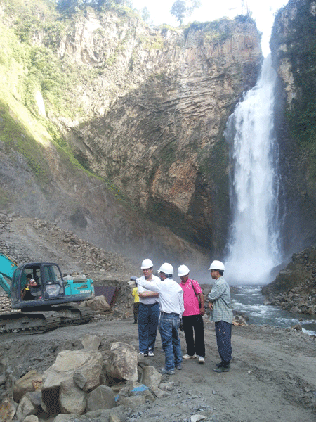 9月20日上午8時(shí),王總一行抵達(dá)印尼棉蘭國際機(jī)場,隨即轉(zhuǎn)機(jī)前往PAKKAT水電站項(xiàng)目所在地。在項(xiàng)目經(jīng)理孫小軍等的陪同下,王總不辭辛苦深入到大壩施工區(qū),認(rèn)真察看了大壩、發(fā)電隧洞等施工現(xiàn)場,他與現(xiàn)場施工人員一一握手并表示節(jié)日的慰問。王總察看施工現(xiàn)場并聽取匯報(bào)后,對(duì)大壩的建設(shè)情況以及工程外觀形象控制表示滿意,并結(jié)合自己的經(jīng)驗(yàn)對(duì)豎井的施工提出了建設(shè)性建議,重點(diǎn)強(qiáng)調(diào)了豎井施工安全生產(chǎn)的重要性。