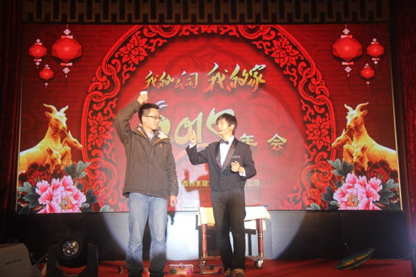 年會在喜慶的氛圍下拉開序幕,公司董事長王元旦發(fā)表了熱情洋溢的新年賀詞,并代表公司董事會向全體員工及家屬,向關心公司發(fā)展的社會各界朋友致以新春的祝福。回顧2014年,王董事長指出,在公司董事會的正確領導下,全體員工上下團結一心,攻堅克難,發(fā)奮有為,頑強拼搏,扎實工作,各項工作取得了令人鼓舞的成績,公司朝著質量好、品牌優(yōu)、信譽高、市場廣的集團型企業(yè)方向邁進。展望2015年,王董事長表示,公司將繼續(xù)圍繞“一個系統(tǒng),五大平臺”建設為工作重心,不斷改革創(chuàng)新,開拓進取,以更加強烈的責任擔當、更加務實的工作作風、更加飽滿的工作熱情,團結一心,同心同德,在實現(xiàn)公司夢的征程上闊步前行!王董事長熱情洋溢的講話,獲得了現(xiàn)場的陣陣掌聲。