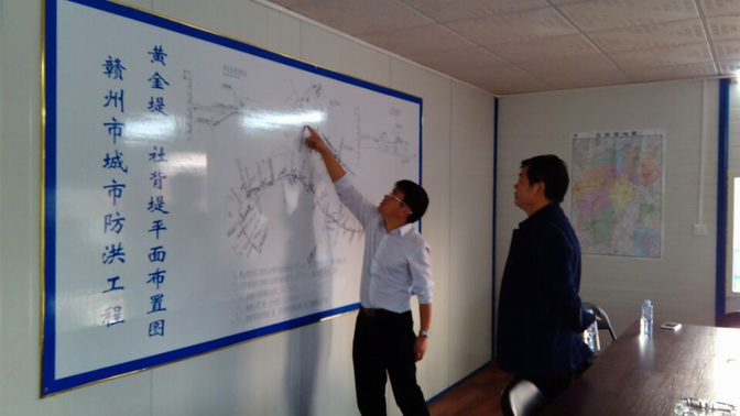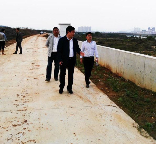 2015年11月20日下午,公司董事長王元旦一行到贛州城防項目檢查指導(dǎo)工作。
