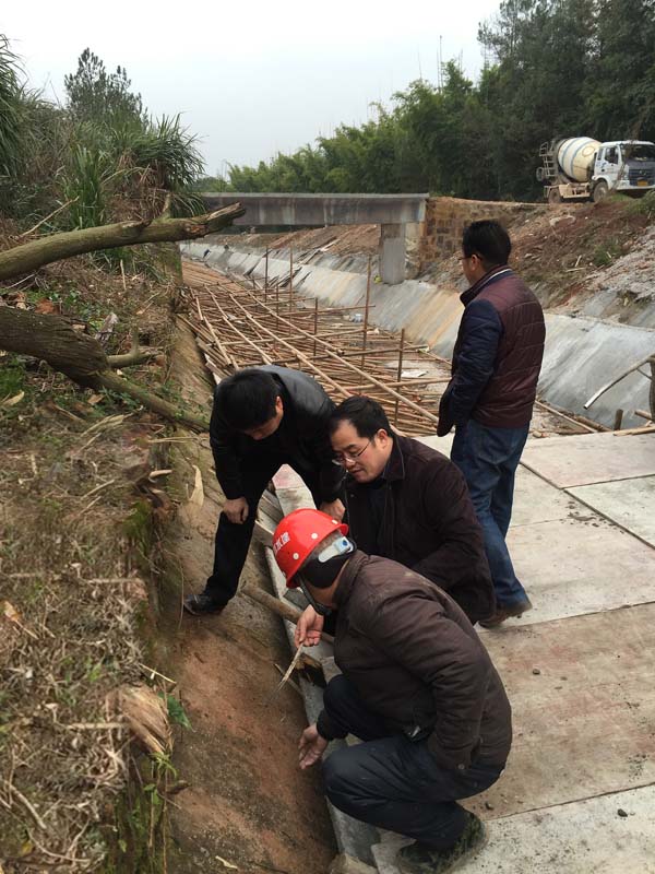 2015年12月28日下午,公司總經理徐洪良一行,蒞臨國家煙草總公司援建水源工程項目江西省興國縣長岡灌區改造工程施工現場檢查項目施工開展情況。