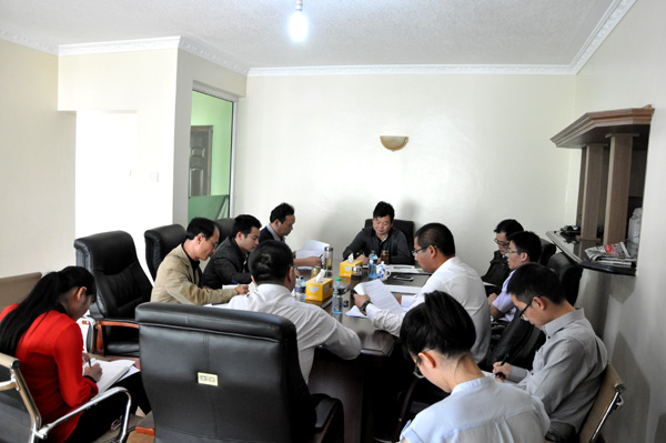 董事長兼總經(jīng)理王元旦一行抵達我公司駐肯尼亞分公司辦事處后,立即召開了海外工作會議。會上,在肯主要管理人員就市場開發(fā)、工程建設(shè)等工作情況進行了詳細匯報,副總經(jīng)理徐洪良、黃鄭民分別進行了發(fā)言。王總在會上做了總結(jié)講話,他對肯尼亞分公司取得的成績給予了充分肯定,對在肯發(fā)展形勢表示了充足的信心。首先,他指出,肯尼亞分公司是一支團結(jié)、有戰(zhàn)斗隊的隊伍,要通過不斷學(xué)習(xí)挖潛,打造一支成學(xué)習(xí)型團隊。其次,他要求肯尼亞分公司要高標(biāo)準(zhǔn)建好在建工程。通過做好雙河房地產(chǎn)項目展示公司實力,通過水電樞紐項目拓展公司發(fā)展方向,為公司海外發(fā)展戰(zhàn)略調(diào)整提供機會,力爭在2~3年內(nèi)把肯分公司壯大,做成亮點。最后,他強調(diào)要高度重視海外項目稅務(wù)工作,他認為這是海外項目最后營利的關(guān)鍵,項目管理要與財務(wù)相結(jié)合,同時要處理好與合作伙伴關(guān)系。