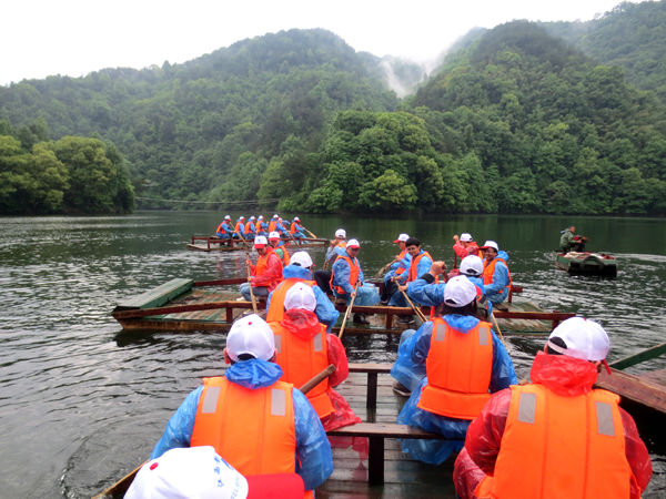 5月4日上午,大家在南昌統一集合,乘車出發前往龍源峽風景區。天空下起了淅淅瀝瀝的小雨,到達景區后,雨勢加大,但并沒有阻擋住江西水建青年員工的熱情,大家經破冰和分組環節后, 60多人分為八組,進入高峽明珠雙燕海劃木板船,在湖心展開了一場別開生面的劃船比賽,激蕩的水花在濛濛細雨中此起彼伏,頗有“百舸爭流”的壯麗場面。隨后,大家興致勃勃地游覽了三星嶺、千福灘、萬壽山和水中大森林等景點。