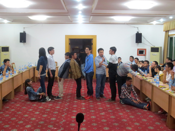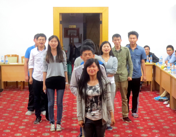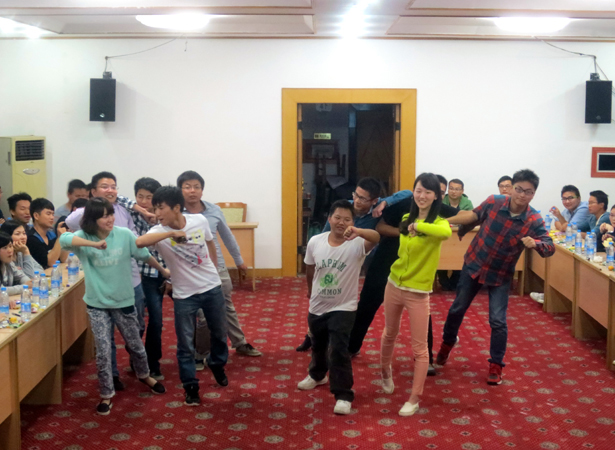 4日下午,大家抵達廬山西海景區賓館后,全體人員進入整隊分組環節,推薦隊長和政委,選好隊歌,設計隊名、口號和LOGO,為增強隊員間的溝通協作能力,要求各組利用下午的時間排練出一個晚會節目。各組隊員們顧不上休息,立刻進入了緊張的策劃和排練中。晚上7點半,五四青年節文藝晚會正式開演,“Dream night隊”“青春夢想隊”“超越隊”等名字紛紛閃亮登場,“我的名字叫青春,我的青春在水建”,“舞動青春,展現自我,放飛夢想,擁抱明天”,“超越夢想,怒放生命”等口號一次又一次迎來全場的陣陣歡呼。隨后的隊歌合唱和節目表演,青年員工們盡情高歌,張揚青春,抒發對夢想的執著和對未來的希望,晚會現場掌聲雷動。