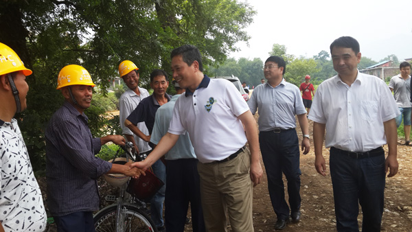 2014年8月8日上午,上饒市委書記陳俊卿一行來到我公司承建的玉山縣樟村鎮(zhèn)防洪工程檢查指導工作。來到施工現(xiàn)場,陳俊卿書記一行頂著炎炎烈日,深入查看并了解了防洪工程的投資規(guī)模和施工生產(chǎn)建設(shè)情況,隨后,項目部經(jīng)理楊小貴對項目完工后將產(chǎn)生的防洪生態(tài)效益作了簡單介紹,陳俊卿書記聽后非常高興,他指出,項目部和承建單位要齊心協(xié)力,加強安全生產(chǎn)管理,確保工程順利完工,早日造福當?shù)匕傩铡W詈螅惪∏鋾涍€詢問了施工人員的生活情況,叮囑項目部既要保證工程施工進度,也要注意防暑工作,讓員工家屬放心。