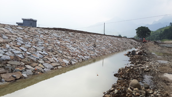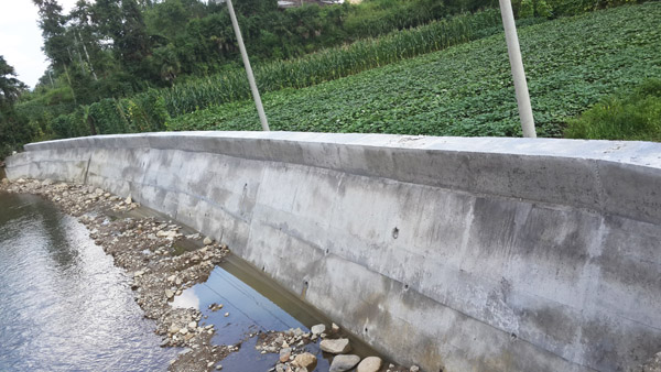 已完成的干砌石護坡和防洪墻片段