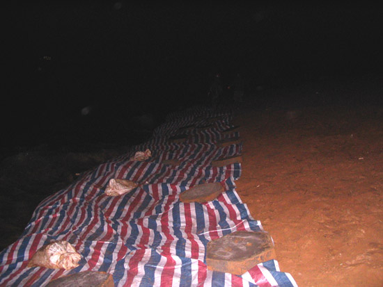 剛鋪設好的防浪彩條布