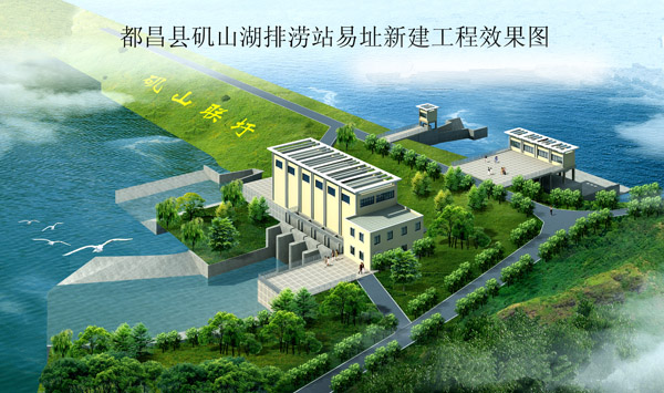 為配合江西省都昌縣打造“城依水建、水在城中、山水相依”的宜居園林城市建設(shè)重點項目——濱水西區(qū)開發(fā)的需要,都昌縣磯山湖排澇站從磯山湖上壩易址磯山湖下壩,新建工程由電排站和自排閘組成,泵站裝機容量4×800kw,治澇標準采用10年一遇暴雨,治澇面積44平方公里,是原磯山湖上壩排澇站排澇能力的2倍,屬中型排澇站。
