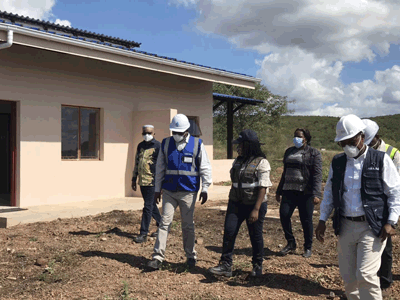 Cecilia女士先后參觀了移民房、副壩、溢洪道和水庫管理站新辦公大樓,并現(xiàn)場觀摩了弧形閘門的啟閉演示。她邊看邊問,詳細(xì)了解各分部工程的建設(shè)情況和項(xiàng)目總體進(jìn)度,認(rèn)真聽取日常施行的各項(xiàng)防疫措施;在得知項(xiàng)目即將竣工的消息后,對承包商的表現(xiàn)表示高度贊賞。她動情地說道,盡管現(xiàn)在新冠肺炎肆虐全球,但是優(yōu)秀的中國承包商在做好各項(xiàng)防控措施的基礎(chǔ)上,仍然堅(jiān)守戰(zhàn)線、迎難而上,充分體現(xiàn)了履約精神和奉獻(xiàn)精神,值得尊敬!她表示,也許疫情將持續(xù)一段時間,但是只要承包商有困難,就要毫不猶豫地向政府表達(dá),公共工程部永遠(yuǎn)是承包商堅(jiān)強(qiáng)的后盾。她強(qiáng)調(diào),業(yè)主國家水務(wù)局和承包商要更加精誠團(tuán)結(jié),充分估計(jì)疫情可能造成的各類影響,謀劃在前、全盤統(tǒng)籌,以縝密的防控措施和有力的生產(chǎn)行動站好最后一班崗,如期實(shí)現(xiàn)項(xiàng)目移交和運(yùn)營,為300萬首都人民帶去生命之水。