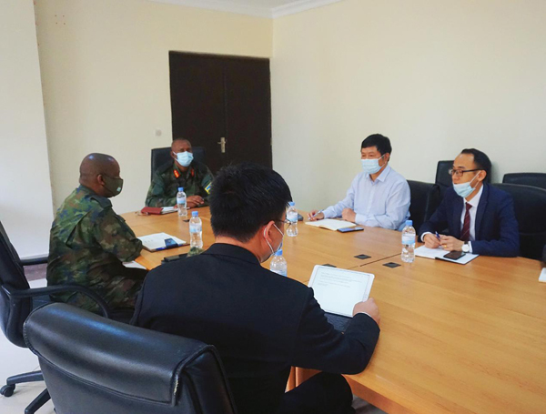 張周平一行會見了軍事學(xué)院項(xiàng)目業(yè)主--盧旺達(dá)軍事學(xué)院司令。雙方就疫情期間項(xiàng)目的施工情況進(jìn)行了充分的交流,氣氛熱烈融洽。雙方非常珍惜和重視此次合作,表示會全力支持推動項(xiàng)目進(jìn)展,并期待兩個(gè)團(tuán)隊(duì)在日后工作中能夠繼續(xù)保持積極有效的溝通,務(wù)實(shí)地解決施工難點(diǎn),盡早完成預(yù)期建筑施工目標(biāo)。