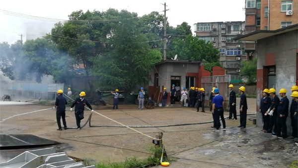 此次演練活動,得到了公司各級領導的高度重視,相關領導親臨現(xiàn)場進行了指導,機安公司廠區(qū)內(nèi)全體員工參加演練。此次演練內(nèi)容:1、火情報警;2、人員疏散;3、搶救物資;4、滅火器使用方法;5、連接室外消防給水滅火等。